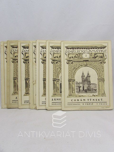 Umělecké památky 2-8: Chrám týnský, Zámek Kratochvíle, Mistr Jan Hus, Pražská domovní znamení, Litomyšl, Zmizelá Plzeň, Veltrusy kolektiv, autorů F. Topič, 1916