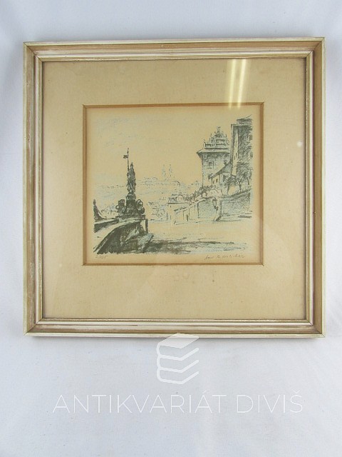 pasparta, kombinovaný rám mírně odřeny; dobrý stav; litografie; 2/135; signatura PD Jan B. Melichar; rozměry tiskové plochy: 160x180 mm, rozměr pasparty: 285x290 mm