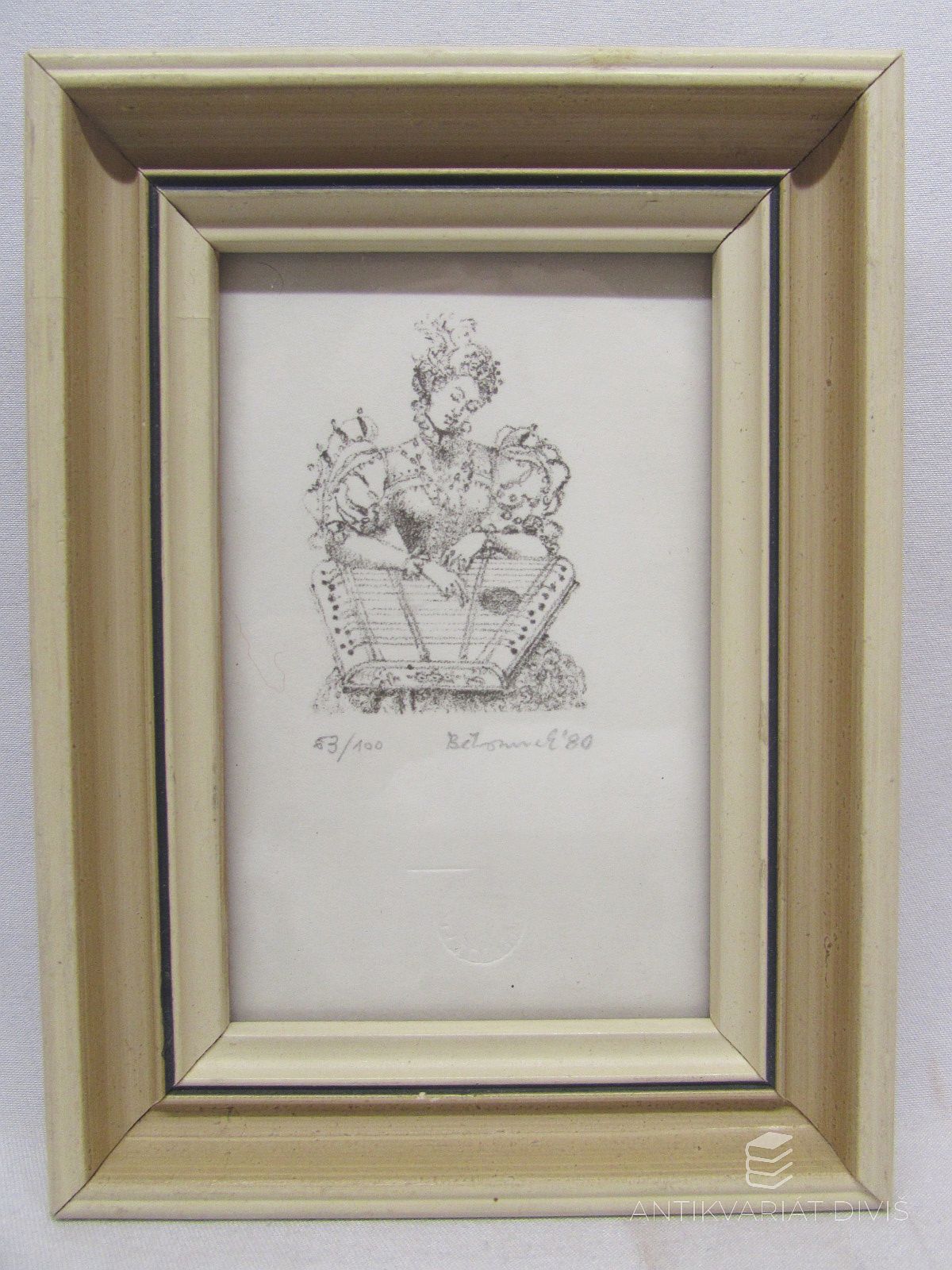 pasparta, dřevěný rám, celkové rozměry 98x132 mm, rozměry tiskové plochy 35x50 mm, signatura PD Běhounka, 63/100; výborný stav