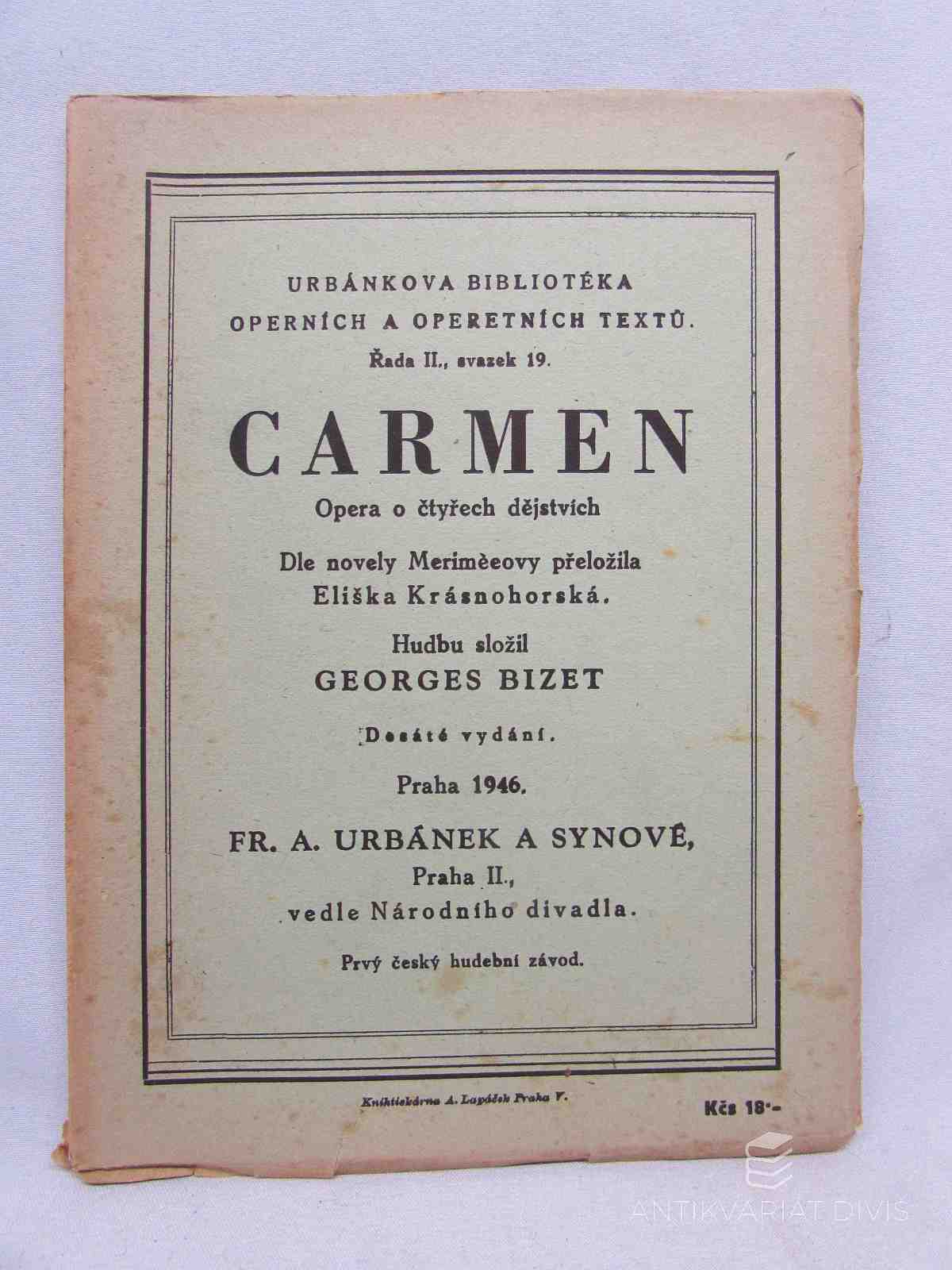 Carmen; Opera o čtyřech dějstvích Bizet, Georges Fr. A. Urbánek a synové, 1946