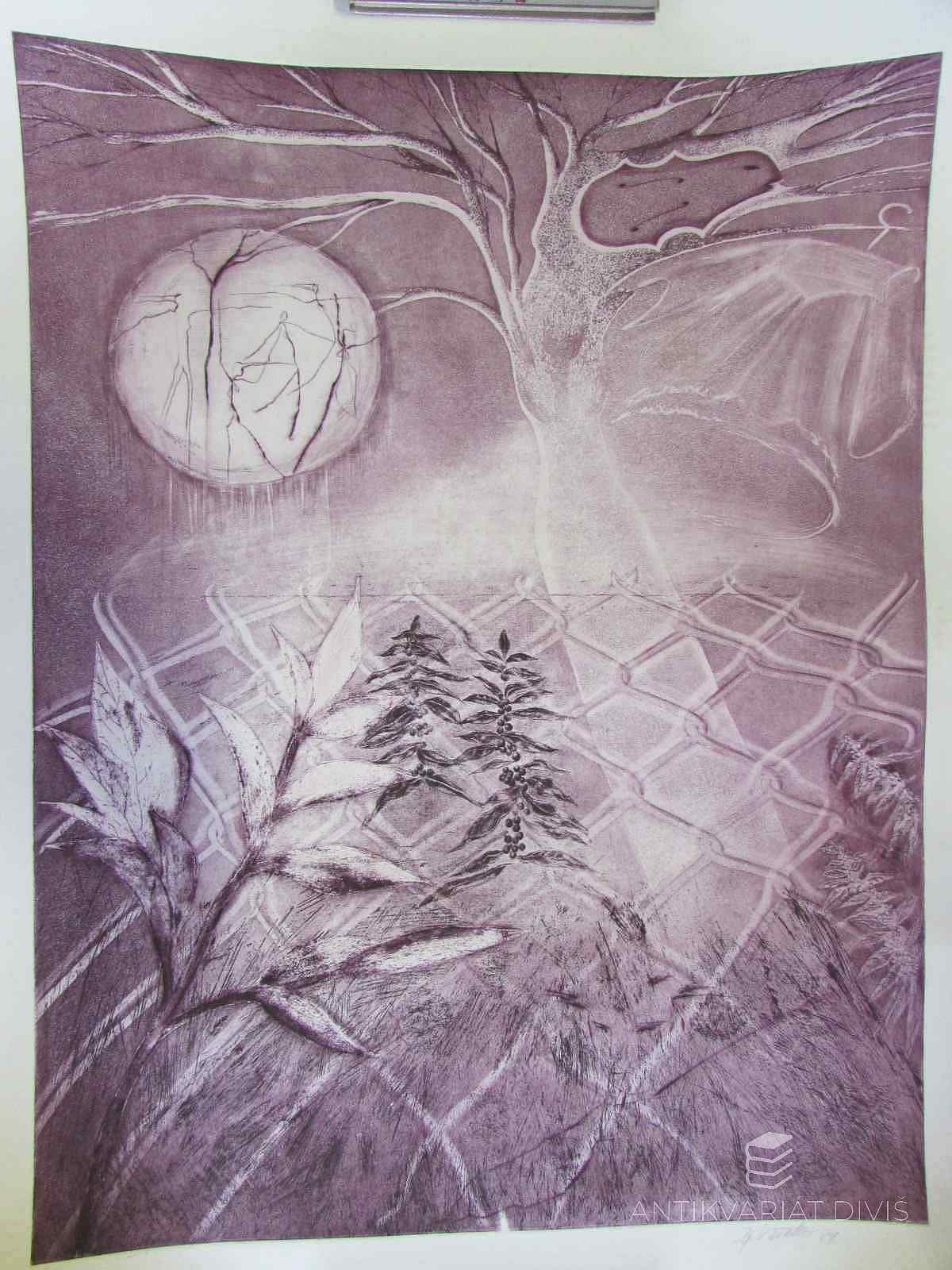 , signatura PD Dagmar Vašákové; autorský tisk; ohnut pravý dolní roh, na horní hraně jsou nalepeny lepítka, na levé hraně v jednom místě ohnuta, na pravé straně místami skvrnky; dobrý stav; celkové rozměry 575x775 mm; rozměry tiskové plochy 490x640 mm