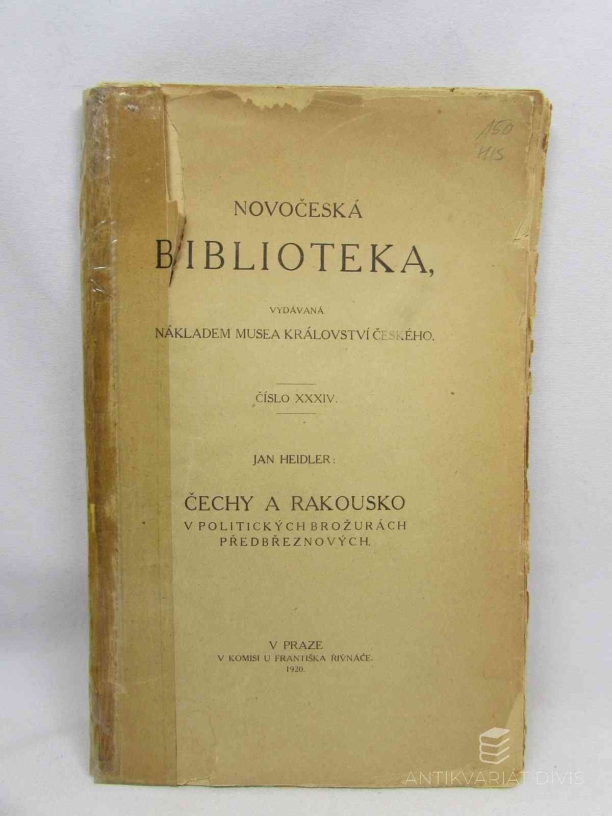 Čechy a Rakousko v politických brožurách předbřeznových Heidler, Jan Novočeská biblioteka, 1920, 220 s.