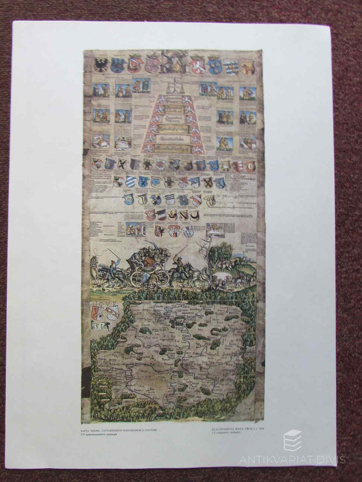 Nástěnná Klaudyánova mapa Čech z r. 1518 Klaudián, Mikuláš VZÚ - Vojenský zeměpisný ústav, 1986