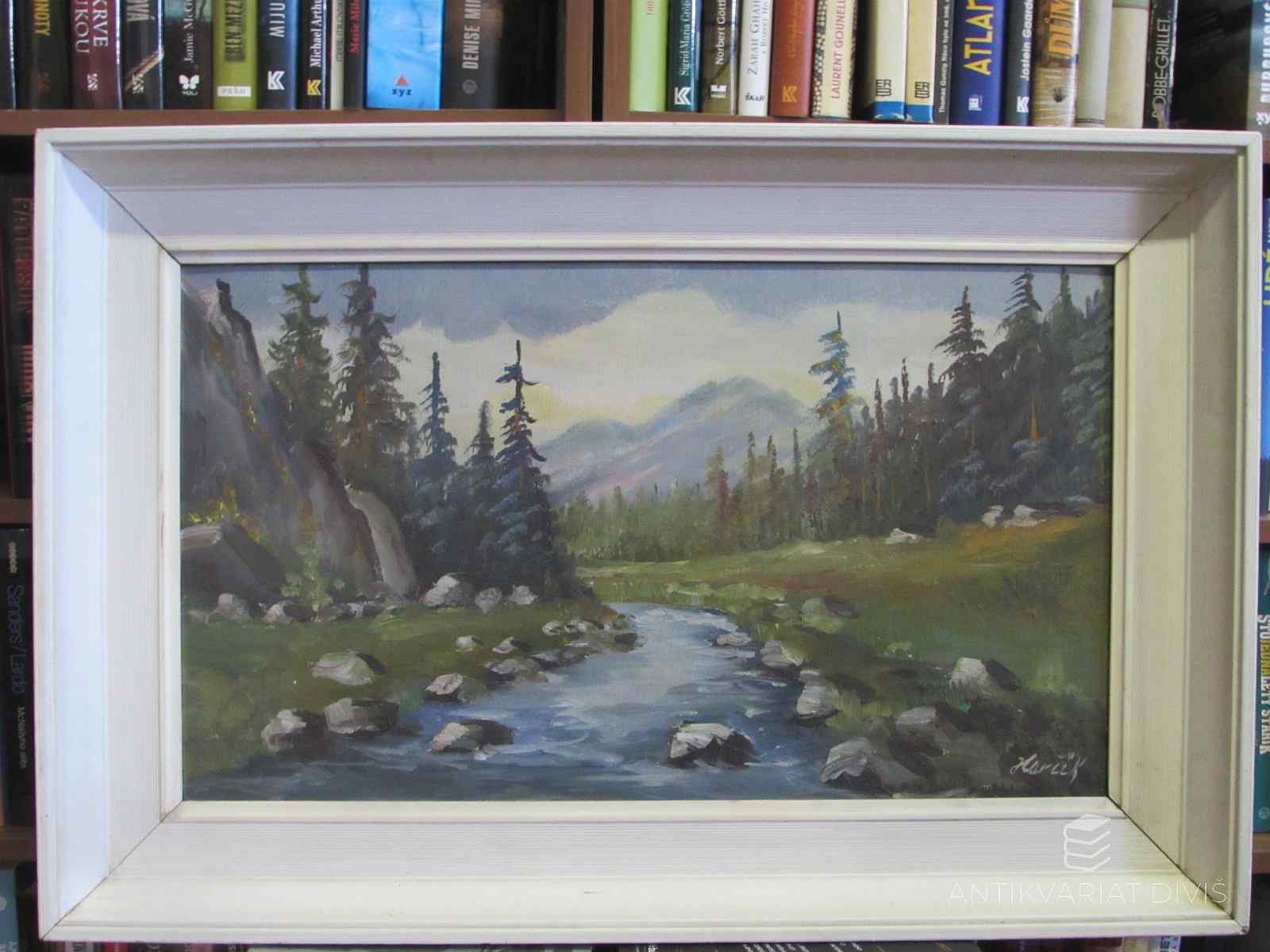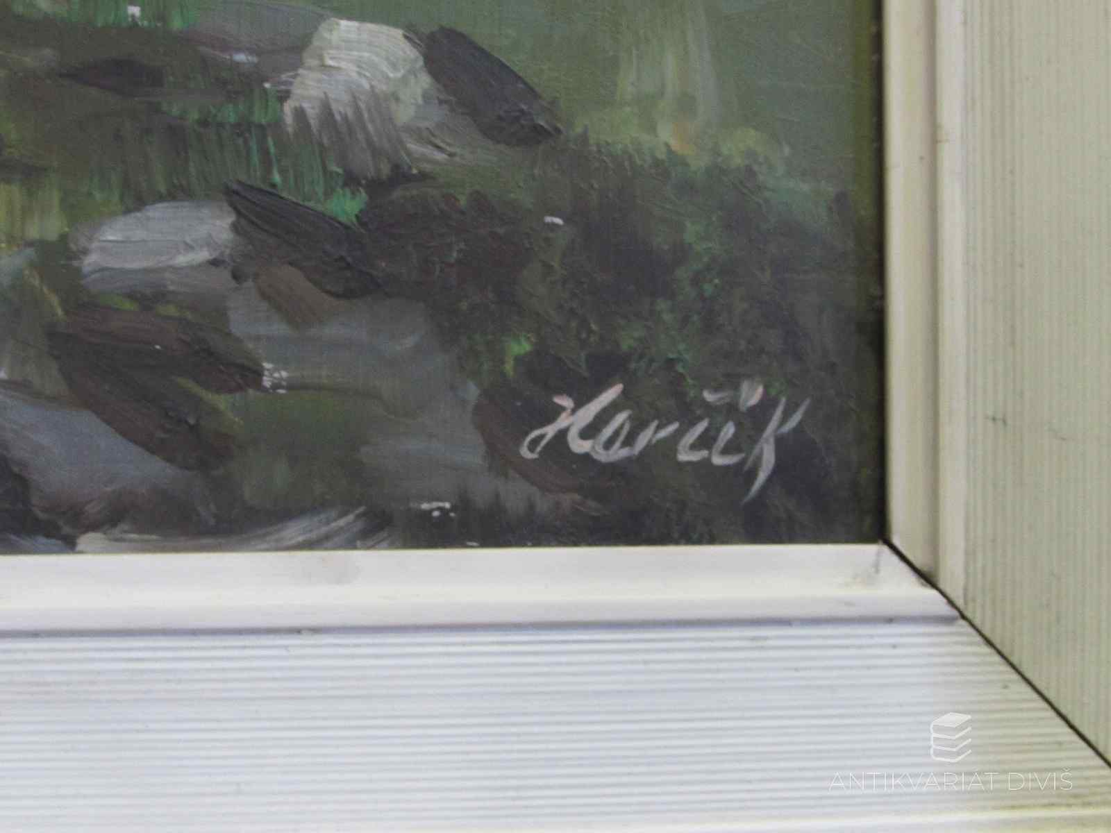 obraz, celkové rozměry 740x490 mm; rozměry malby 590x340 mm; olej na sololitu, podpis PD; rám mírně odřen