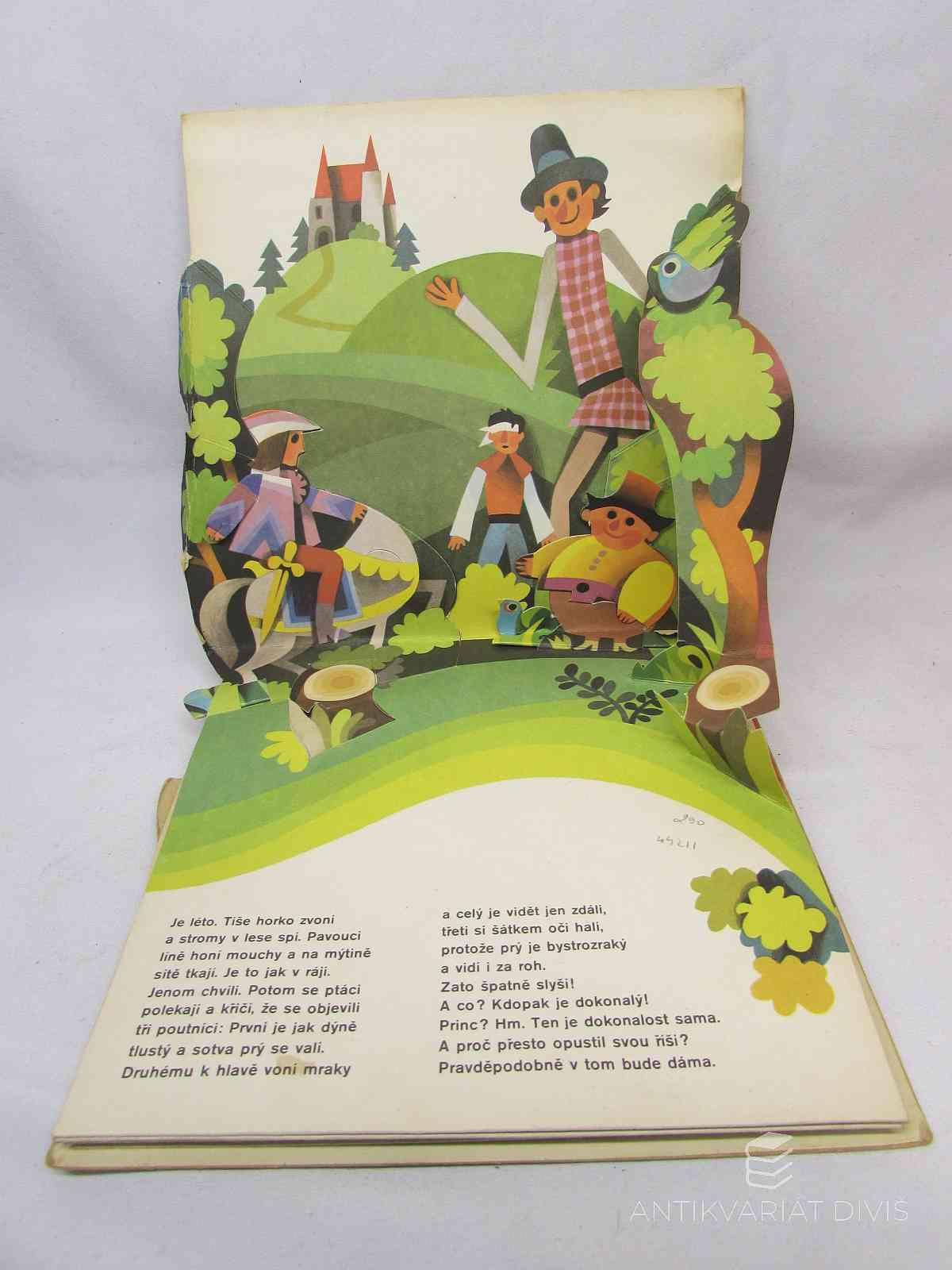 leporelo, jedno z hejblátek na prvním dioratamu není kompletní, zbytek je; občas špatně ohnuto, minimálně natrženo; prostorové leporelo (pop-up, 3D, rozkládací, panoramatické)