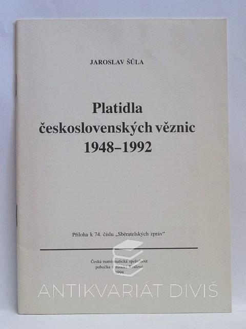 Platidla československých věznic 1948-1992 Šůla, Jaroslav Česká numismatická společnost, 1994
