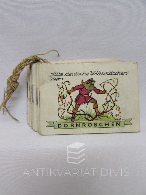 sešit, 1 Dornröscher, 2 Rotkäppchen, 3 Der Froschkönig, 4 Das Tapfere Schneiderlein, 5 Schneewittchen, 7 Hänsel und Gretel, 8 Rumpelstilzchen, 9 Aschenputtel; 7 x 5 cm; 8 sešitků v dobrých stavech