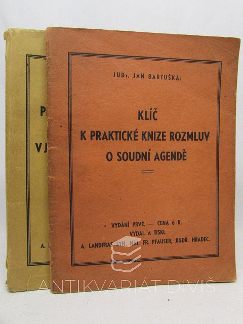Praktická kniha rozmluv o soudní agendě v jazyku německém i českém + Klíč k praktické knize rozmluv o soudní agendě Bartuška, Jan A. Landfras Syn, 1941